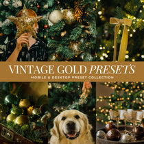 Where Vintage Plaid evokes cozy red and green tones, The Vintage Gold Lightroom Presets focus on the refined warmth of gold, brass, and pine green. This collection captures the Ralph Lauren holiday aesthetic at its most elegant, with rich golden tones, bronze highlights, and creamy whites that feel cinematic and timeless.