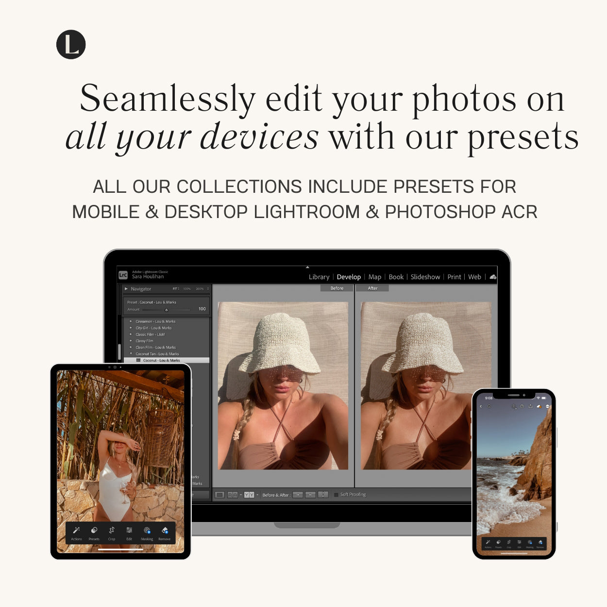 Bring the warmth of the tropics to your photos with The Coconut Tan Lightroom Preset Collection. Create the perfect sun-kissed look and get the perfect summertime aesthetic.