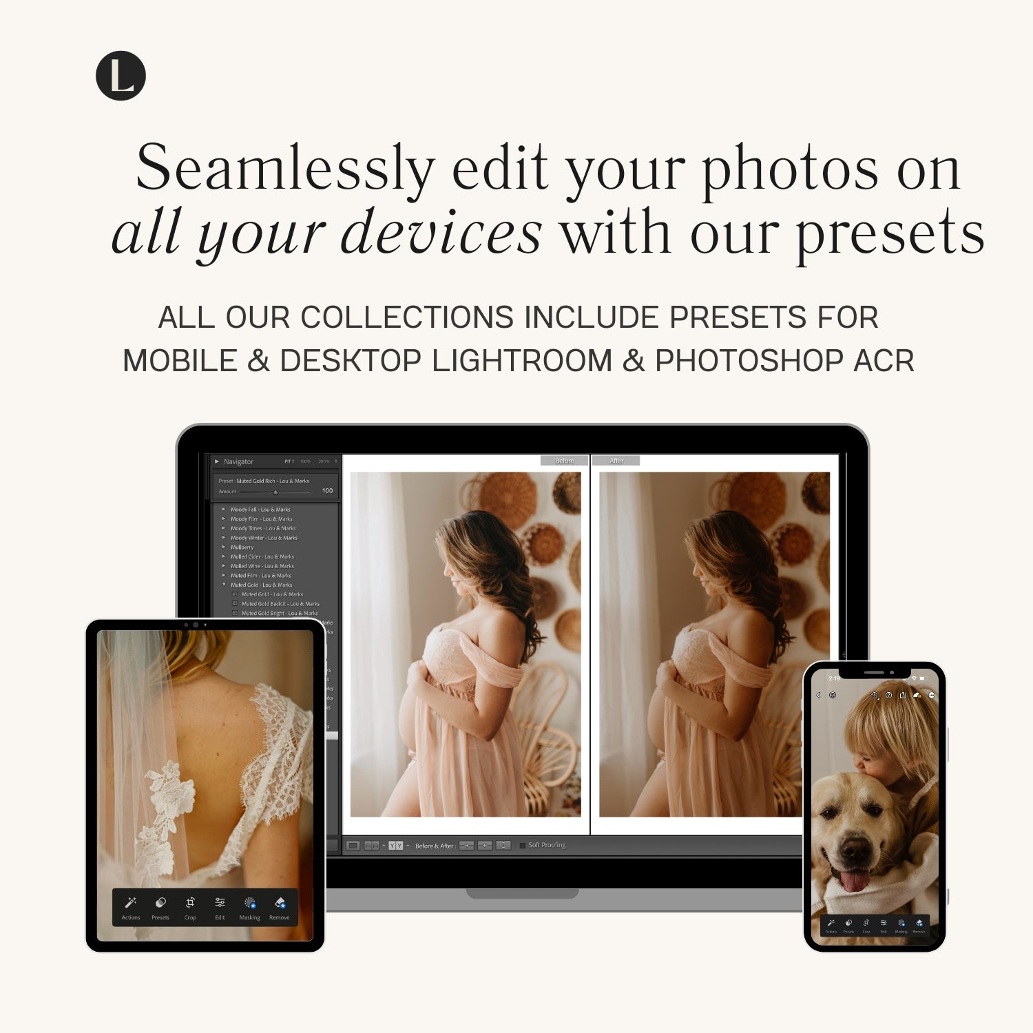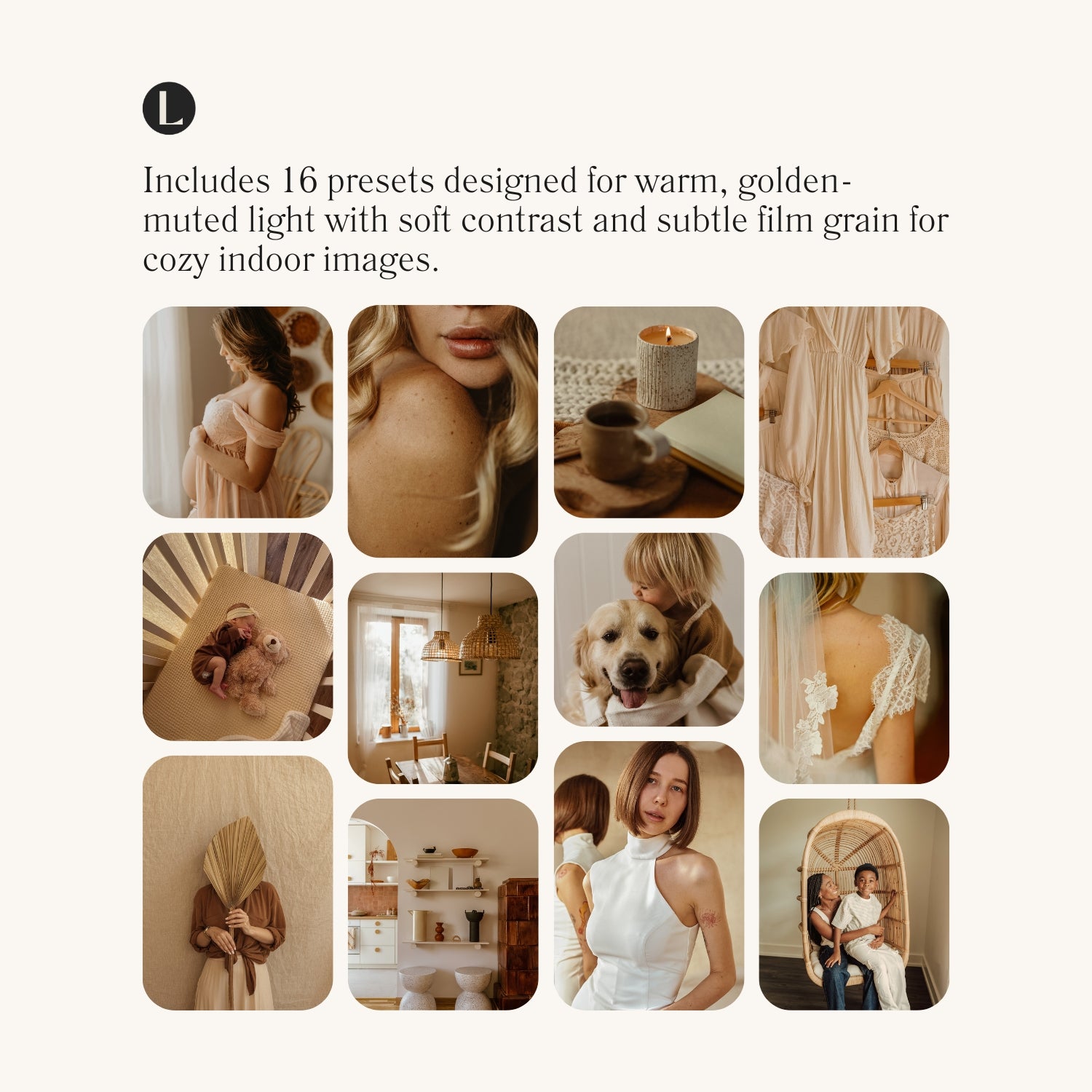 Perfect for creating gentle warmth without overpowering tones, this collection makes editing effortless with just one click. Designed for indoor light and neutral spaces, while still working beautifully year-round.
