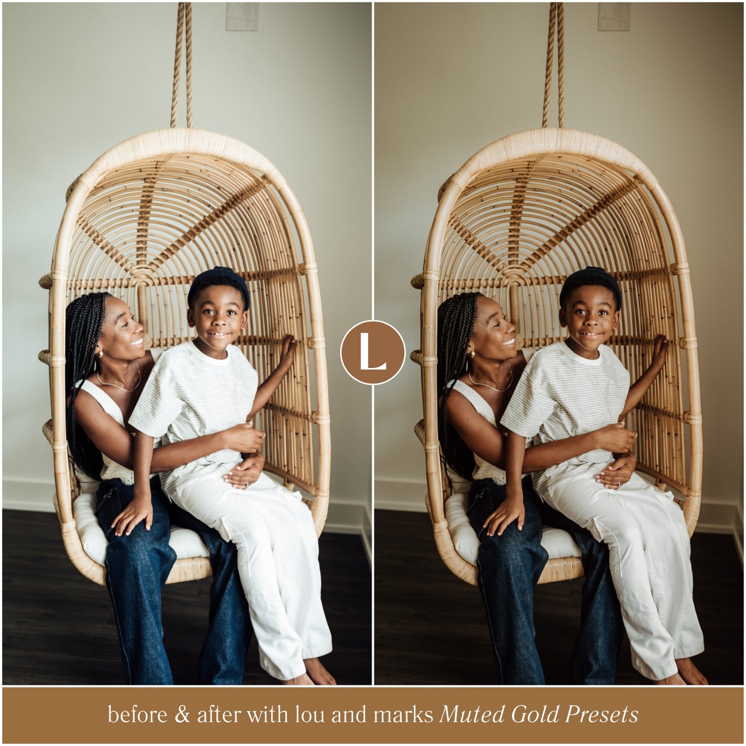 Presets For Everyone — Whether you're a photographer editing portrait or lifestyle sessions, a creator refining indoor imagery, or simply editing everyday photos for yourself, you will love the Muted Gold Preset Collection.