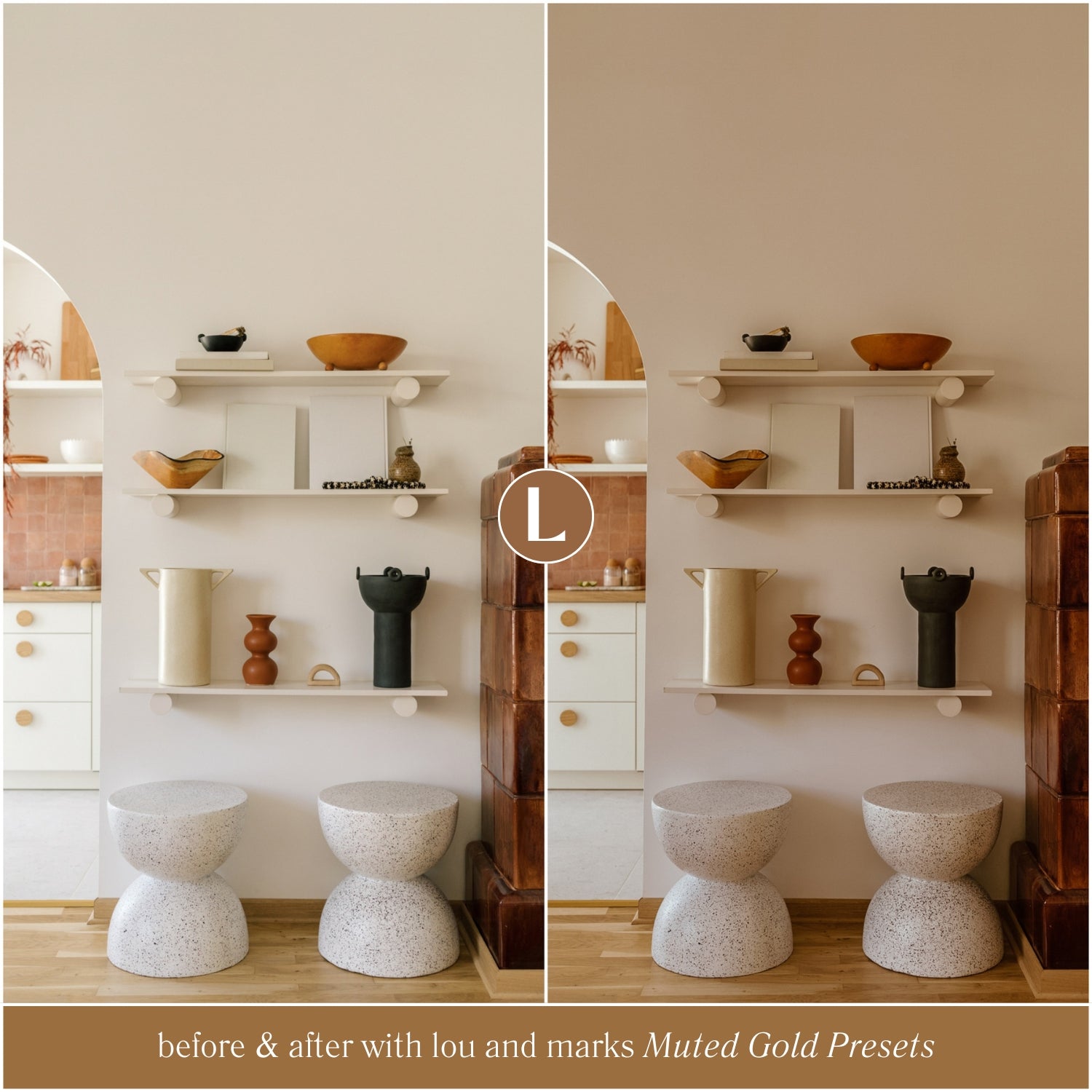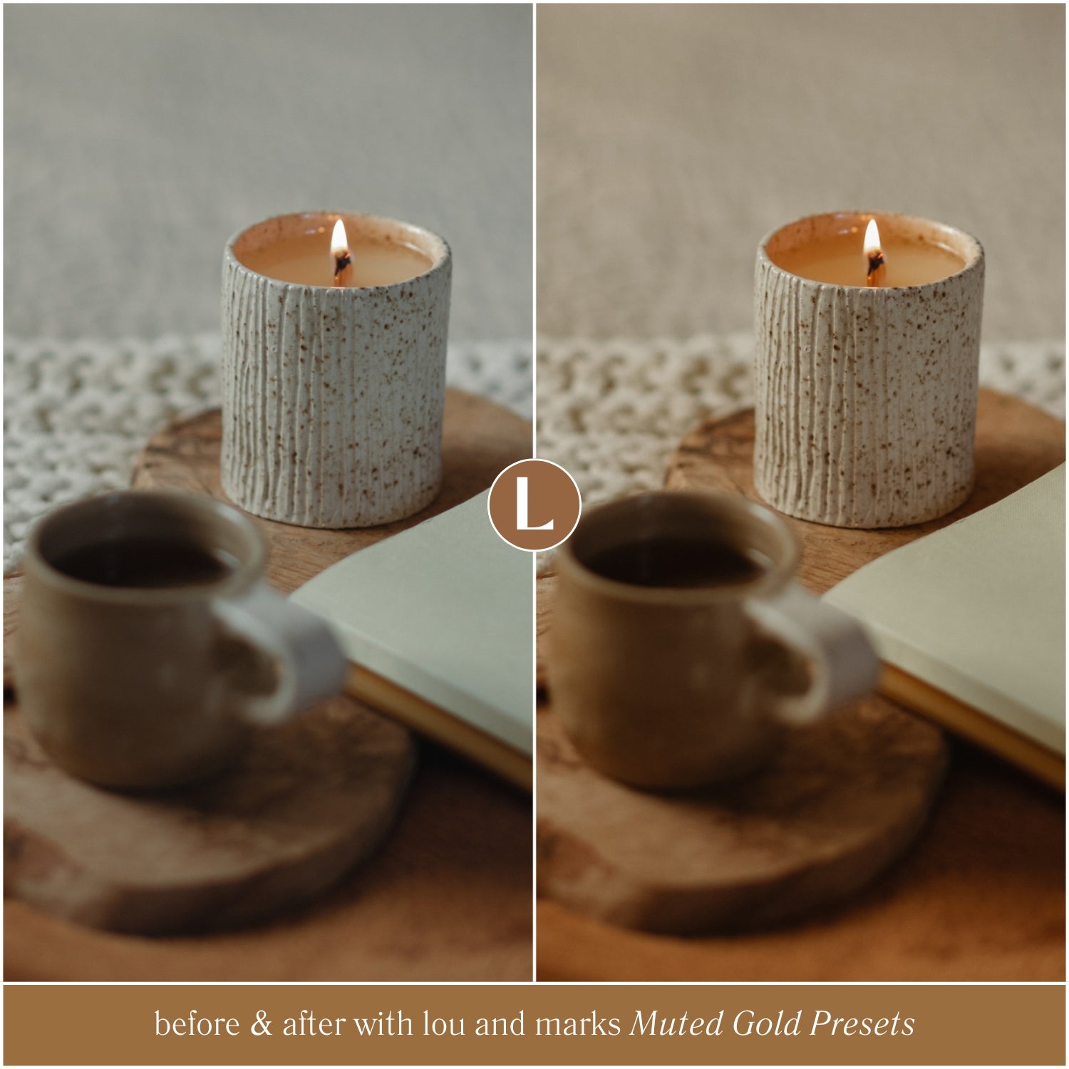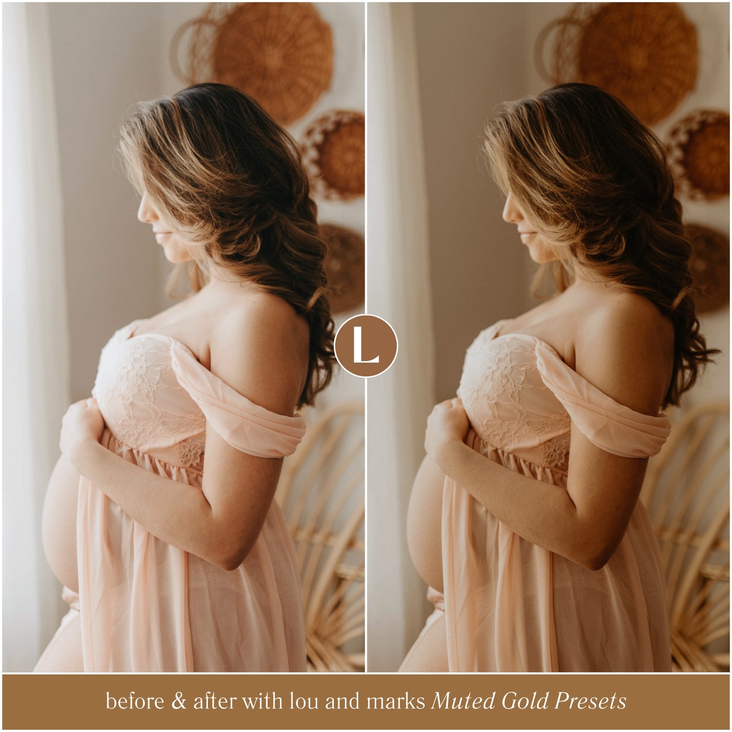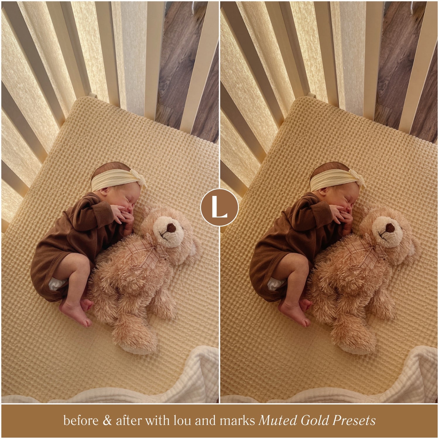 Includes — 16 Muted Gold Presets Mobile & Desktop