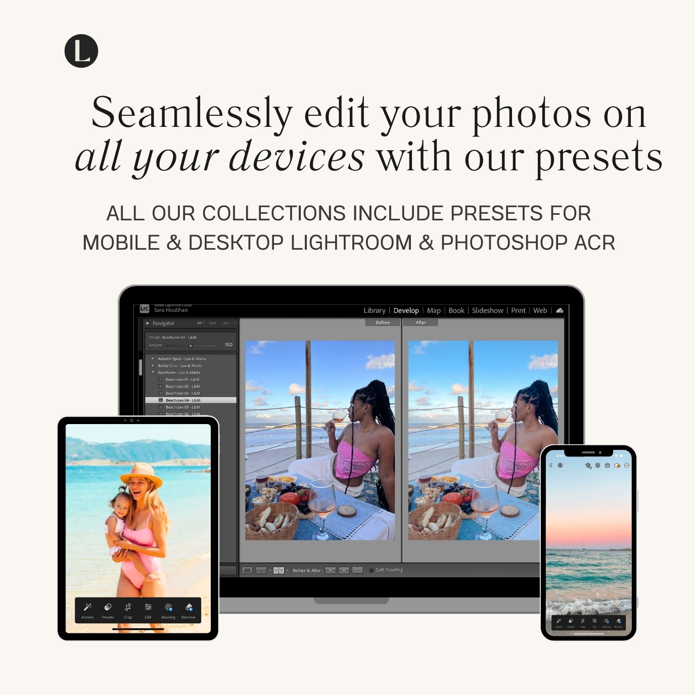 Compatibly — Our presets are compatible with the Free Lightroom Mobile App For iPhone & Android + All versions of Lightroom Desktop, Photoshop CC, Mac & Windows, so you can seamlessly edit your photos on all your devices. Includes dng files, xmp files, and lrtemplate files.
