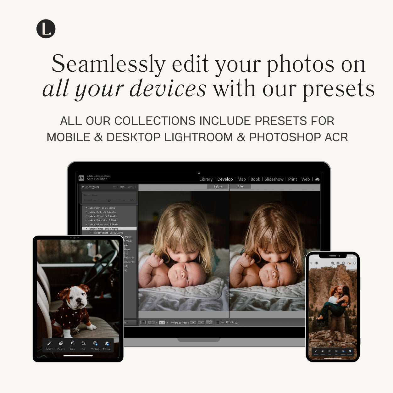 best moody Lightroom presets for instagram and photographers for Lightroom and photoshop editing photos by Lou and marks presets for newborns