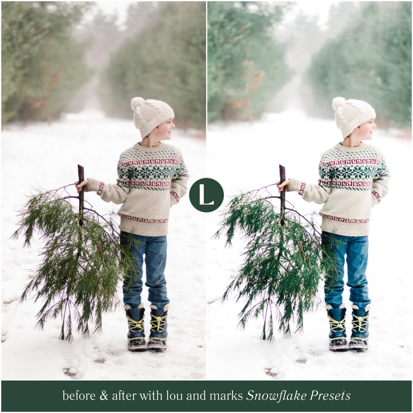 Add a wintery touch to your photos with The Snowflake Lightroom Presets Collection. These professional photo presets will help your photos look their best by making them brighter, cooler, and making colors stand out. Transform your photos into a winter wonderland with just one-click.