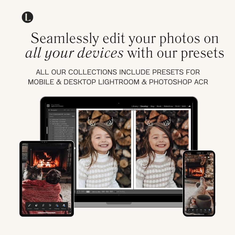 The Caramel Apple Lightroom Preset Collection is perfect for capturing the warmth and feel of the holiday season in your photographs. Transform your images with golden light and subtle matte tones, and enjoy the beauty and coziness of the holidays these presets bring out.