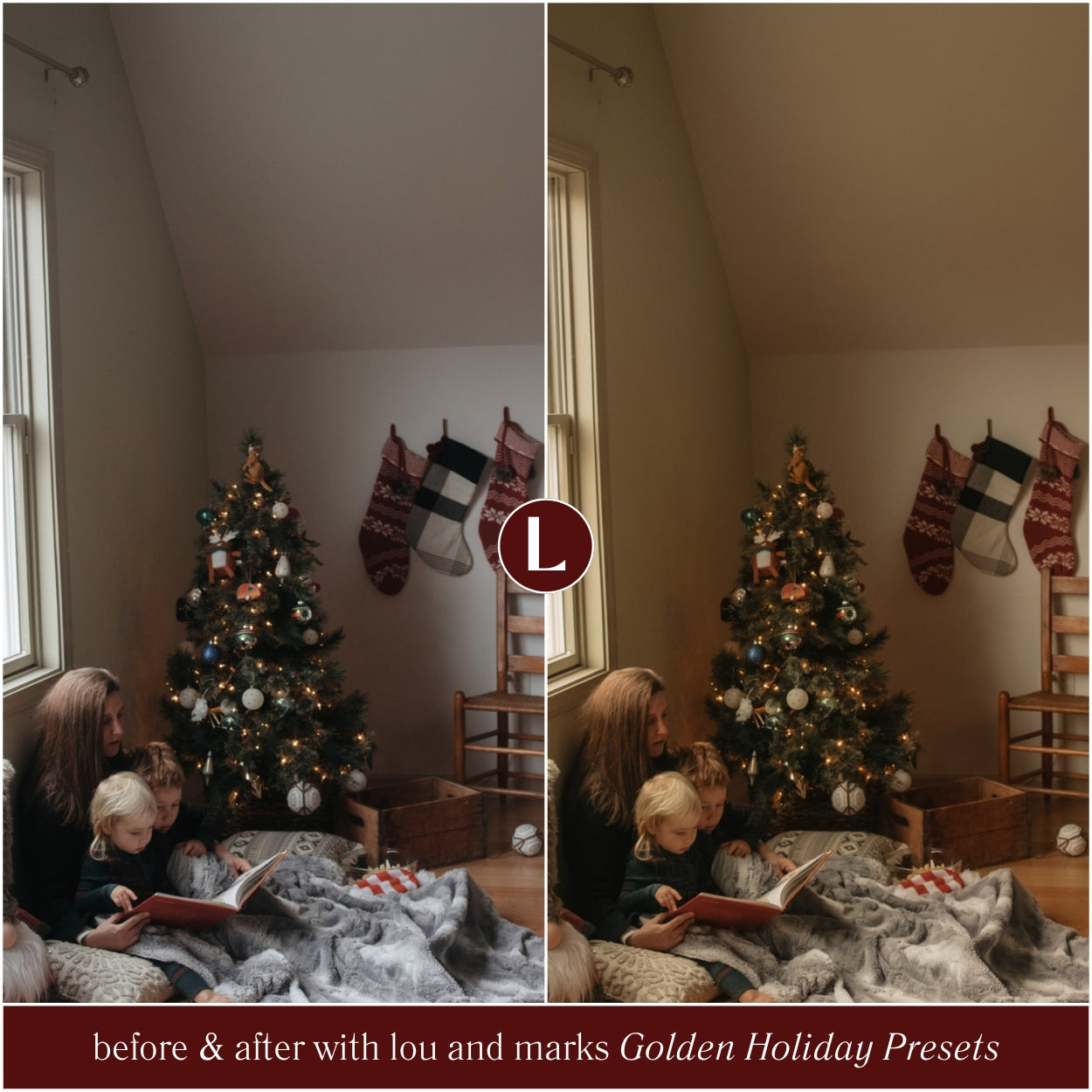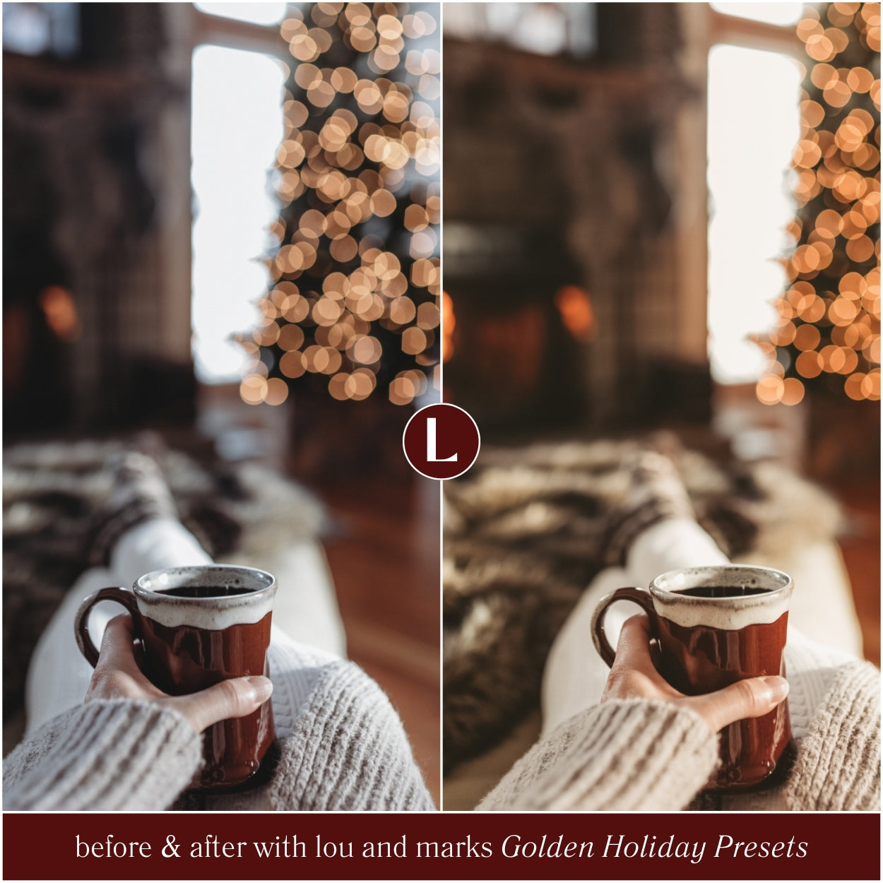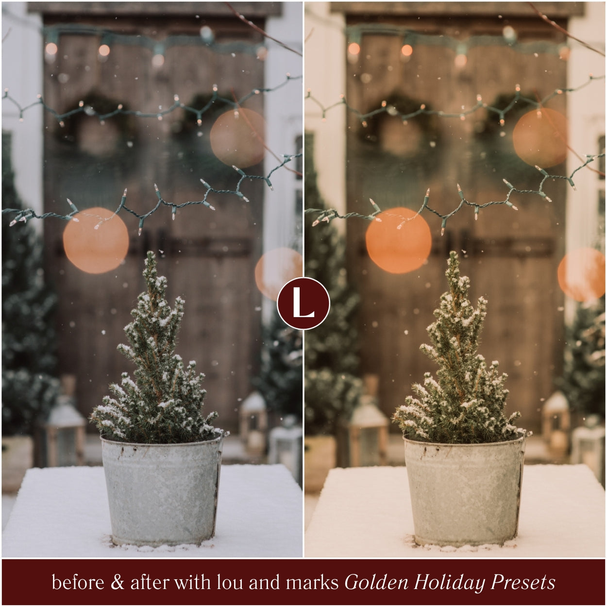 Includes — 12 Golden Holiday Presets for Lightroom Mobile & Desktop