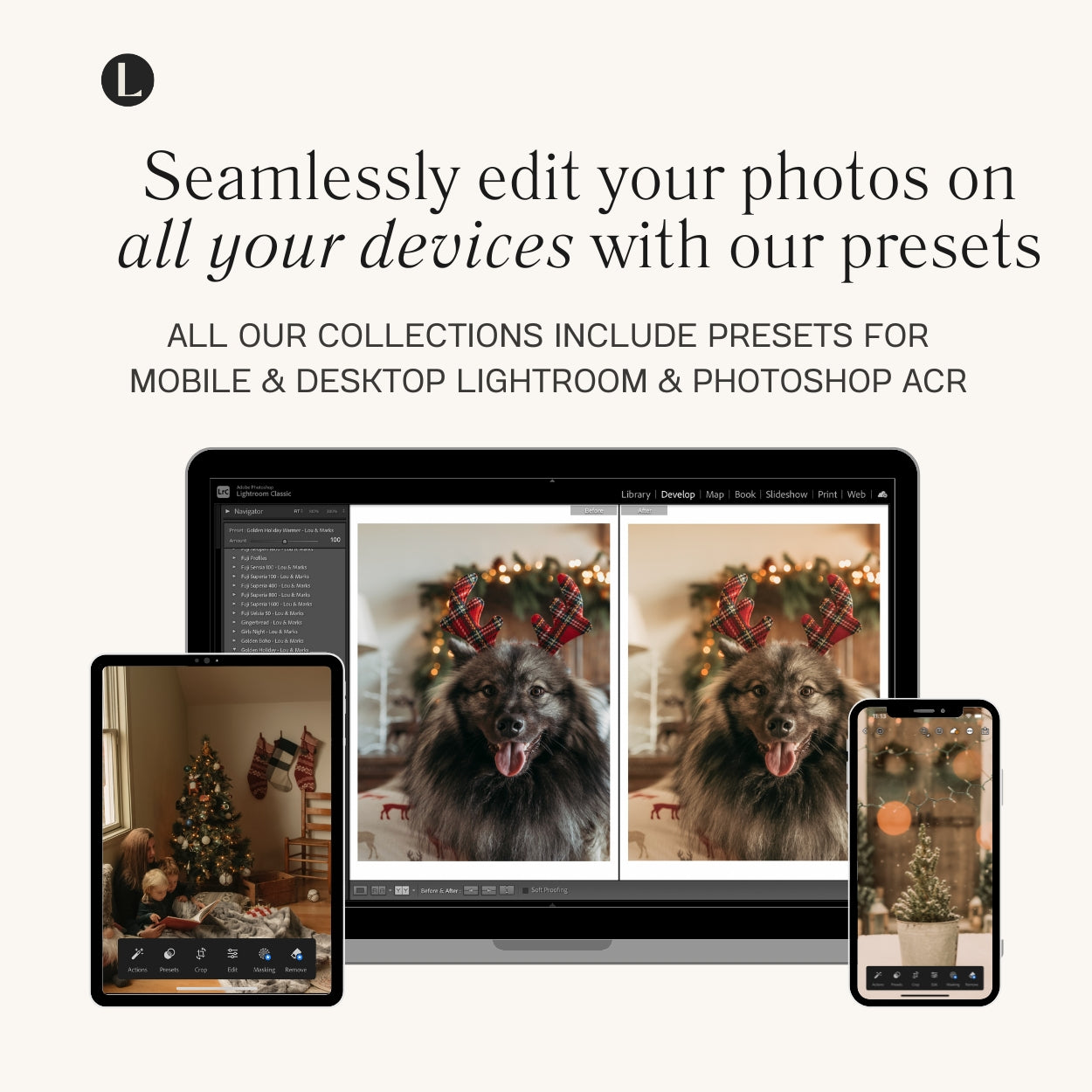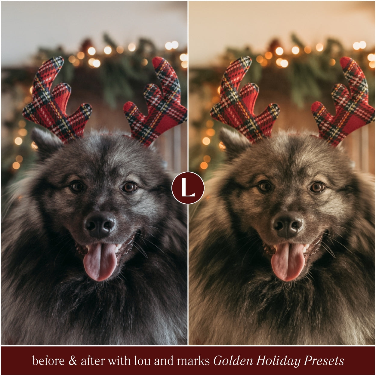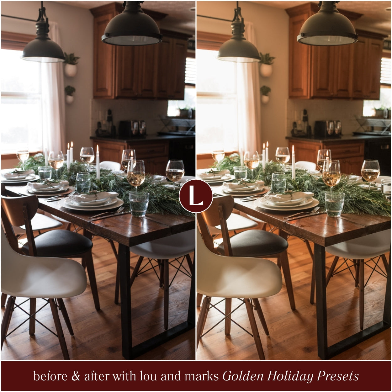 Includes — 12 Golden Holiday Presets for Lightroom Mobile & Desktop