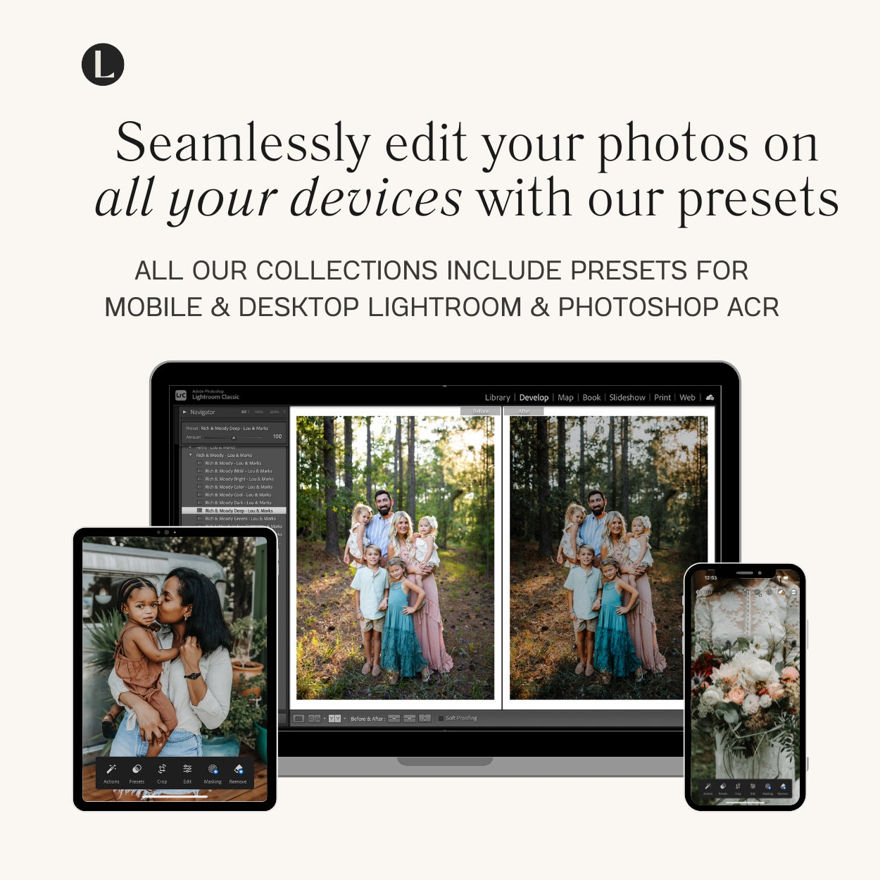Create the perfect moody tones with The Rich & Moody Preset Collection. Rich & Moody will transform your photos with stunning color and bold contrast to create the perfect edit in just one-click, achieving the perfect lighting and colors for your photos every time.