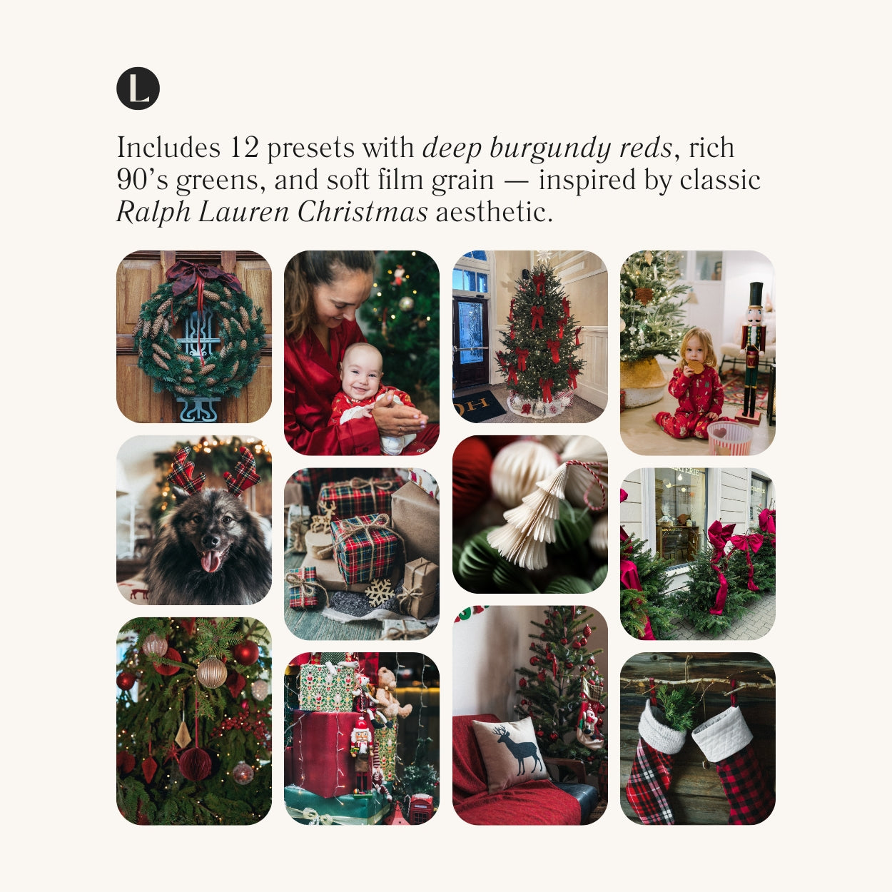 Capture the timeless elegance of the holidays with The Vintage Plaid Preset Collection 🎄 Inspired by Ralph Lauren’s classic Christmas style, these presets bring deep burgundy reds, cool 90’s blues, and rich green tones together with soft film grain and vintage warmth. Create cozy, cinematic edits that feel straight out of a nostalgic holiday catalog.